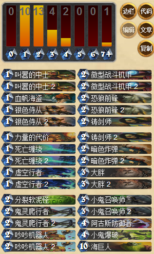 本来这套卡还加入了基维斯和强化机器人,但考虑到术士不是那么缺过牌,并且都是1攻的情况下BUFF了也很难有作为,于是换成了小鬼召唤师增强铺场。有兴趣的玩家可以进行别的微调,让这套卡更符合现在的形势。