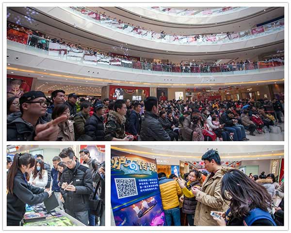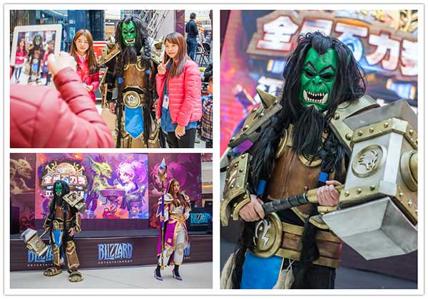 得知决赛举办的消息,整个万达广场在当天陆续被玩家包围;在比赛进行正酣时,万达广场的4层楼也人头攒动。全场只见玩家用各种角度围观比赛,手机狂拍根本停不下来;而“吉安娜”、“萨尔”等Coser精彩表演,更是点燃了现场的狂欢气氛。