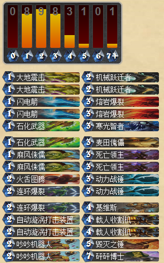 机械套路的基本套牌,发条侏儒比齿轮大师更适合萨满,因为动力锤的作用很容易就变成4攻爹,另外两张零件有时候也会有惊喜。