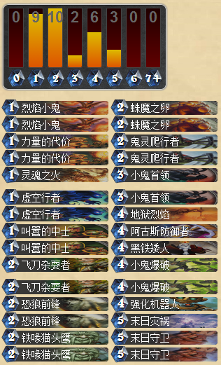 首先我这套一张橙卡都没有,砰砰博士什么的都没有带,不过多了灵魂火,俩小鬼首领,地狱烈焰和一个末日灾祸。