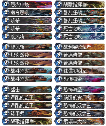 第二套是奴隶战,现在各种版本很多,成本也不高,因为没后乱斗、盾猛和吼爹,不善于解场,要努力过牌,主动抢节奏,优先铺场,让对面解场。