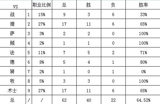 优势对局:机械法、节奏法、动物园、恩泽牧、中速猎、变速猎、机械萨、红龙冰法等