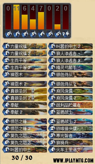 曾经是最弱的一个职业,但圣骑士最近似乎又有了些许起色。快攻骑士虽然不多但效果还是不错的。快攻骑士的流行是因为他在对阵两种主流卡组时有很好的效果。