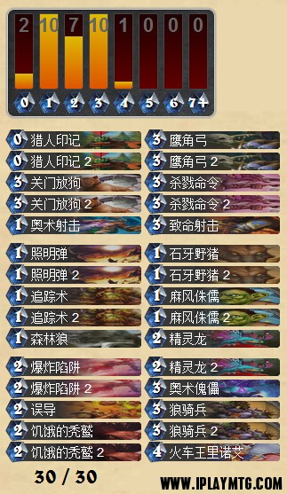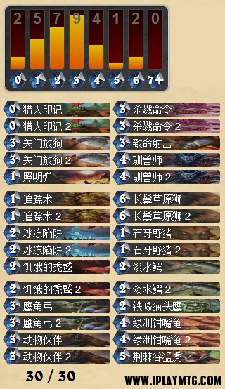 这套卡组在目前的大环境中非常合适,由于天梯中猎人的稀少,我们没太多的方法来对付挂着冰箱的法师,除非能打出一套高伤害的连招,或者是靠着已经很高的场攻,但这对付冰法往往都不起作用。