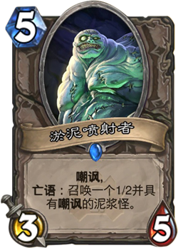 使用价值:蜘蛛区最火的牌就是在第三关解锁的,这次瘟疫区如果不出意外也是这张牌最火。首先这张牌是一个特别适合针对快攻的嘲讽牌,拥有森金持盾卫士的身材,而且亡语还能够召唤出一个小嘲讽。在五费这个费用上之前并没有好用的嘲讽随从,这张卡的加入让长城德或者其他长城职业的曲线更加完美,4、5、6费都有非常给力的嘲讽随从,想象一个一张淤泥喷射者就可以抵挡住一套自然之力+咆哮的组合,这张牌的性价比可以说是相当之高。