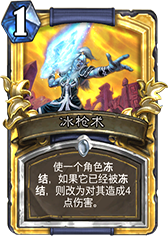 冰枪术:大部分情况都是用来配合寒冰箭或双冰枪(除非伤害够,不然尽量避免双冰枪)打脸,偶尔可以用来控制英雄或者随从行动。
