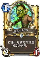 疯狂投弹者:打动物园有奇效,尽量用在对面随从多的时候,也可以配合苦痛寺僧过牌。