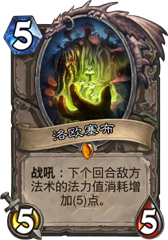 点评:这张牌自从放出来的那一刻就和玩家的天梯卡组无缝对接了......没办法,谁让之前的奇迹贼太过嚣张呢。之前有传言说暴雪要削弱加基森来达到抑制奇迹贼的效果,从目前来看这并不需要了,通过新加入单卡来平衡老卡组是暴雪的一个明智之举。除此之外,洛欧塞布在对抗任何职业(动物园除外吧,但是还是有点用)都是非常有用的,可以说可以让对手一回合使用不了法术,一回合OTK什么的就再见了,至于控制节奏,打乱对手计划这些就更不必说,总之洛欧塞布应该是纳克萨玛斯的良心之作,是居家旅行、杀人越货的必备橙卡,甚至有叫板炉石第一橙卡的资本哦!