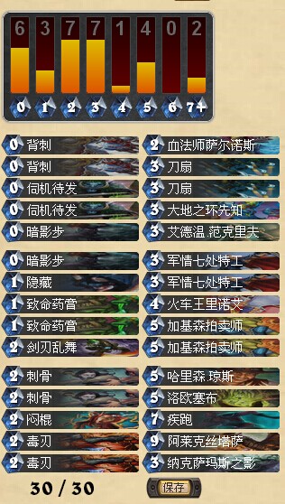 对局中最后两张加基森,是每一个奇迹贼玩家心里永远的痛。疾跑+伺机待发的组合,4费可以抽取4张牌,在加基森迟迟未露面的时候,有效的利用伺机待发,不仅避免伺机待发卡手,同时又缓解手牌压力,一举两得。