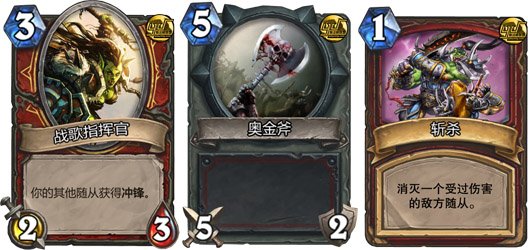 1.战士的核心思路是用武器开路,或者场上由一个战歌指挥官用比对手大的仆从开路也还可以。注意奥金斧除非能把对手打死一定不要砍英雄!