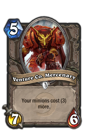 就在上周,我在和几个朋友讨论了几张不是非常好,但却会对游戏局势产生深远影响的卡牌。风险投资公司雇佣兵就是其中的典型,这张5费的仆从有着惊人的7/6体质,但副作用则是,你之后所召唤的其他仆从费用要增加3点。