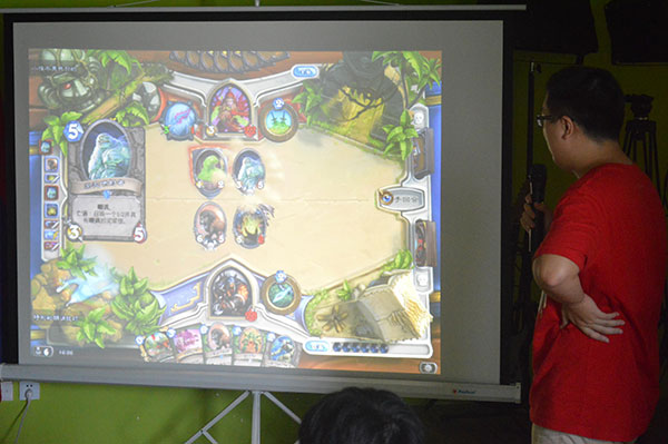 在后来的游戏文化分享环节,翡翠梦境游戏协会的张楠给大家讲述了炉石里最让人深恶痛觉的卡组——动物园的前世今生,引出了“速攻为王,娱乐作死?”的话题,水友们也纷纷提出了自己的观点,认为中国炉石圈普遍缺乏原创,认为这也是中欧赛事等大型赛事中国没法取得好成绩的重要原因。