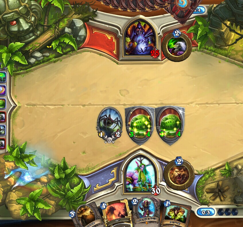 ②:中后期就是打脸抢血为主,基准斩杀线是自然+咆哮的14点伤害,所以我们尽量打到对面只剩14血。