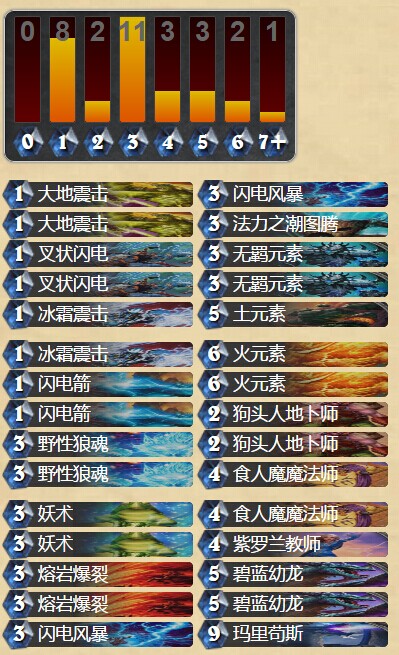 总体来说,这套卡组放弃了,萨满卡组中几乎必备的幽灵狼、闪电箭、大地震击、火元素,是非常大胆的选择,卡组因此而具有一些隐患。但个人认为这套卡组不算是纯娱乐卡组,具备一定的战斗力,在天梯10级之前,可以尝试使用。