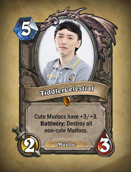 TiddlerCelestial(小鱼鱼大仙人) 5费 2/3 (种族:鱼人) 可爱的鱼人获得+3/+3.战吼:摧毁所有不可爱的鱼人。