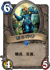 1费4点属性,在naxx之前被认为是严重超模的牌,对动物园而言不但可以保护其弱小的生物不被战士的斧子蹂躏,对萨满来说通过火舌等buff换怪以及治疗的回血护脸都是很不错的选择,当然有时候也有丧病的攻等血牧师一费无敌44嘲讽。。
