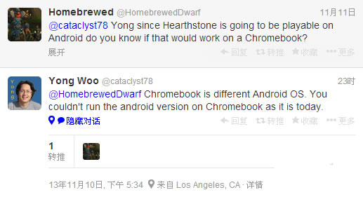 要说炉石传说登陆windows和mac平台还算情理之中,不过是否会移植到其他的系统平台我们就不得而知了。针对网上有玩家询问炉石是否会登陆超级冷门的谷歌系统,首席制作人Yong Woo表示,chrome OS是一类不同于安卓的操作系统,开发组没有针对此操作系统的开发计划。