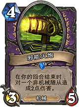 新的时代就要到来,结果术士目前只公布了一张卡。小编个人认为这个邪能火炮就是一个逗B卡,什么清萨满图腾动物园怪的理论都是闲扯。首先是非机械随从,遇到人家机械流派的就是一个废卡,而且要知道,身材勉强符合费用,效果基本一文不值,整体价值还不如一个碳四订购。接着上边说,不过是非机械随从,而且是随机一个,不是指定,而且是完全随机,你如果上个虚空行者,或者董大师,只要不是机械一样也会让自己深受其害。简直坑,这也配叫职业仆从?