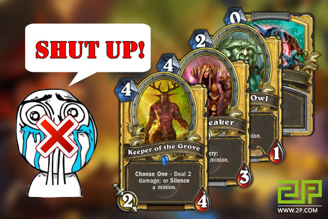 你们都明白沉默能带来怎样的影响。如果你的随从被沉默了,那么他们的技能和受到的加成都会消失,这对增强型的卡组来说简直就是灾难。我还记得在对战牧师的时候,有个笨笨的玩家在一张北郡牧师的身上放了3个BUFF,创造了一只12/12的猛兽。然后我的猫头鹰上场,仅耗2点魔法,就把它打回原型(还顺便让它的特效也消失了)。