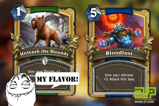 不少猎人和萨满都擅长爆发型卡组,他们可以在一个回合内打出成吨的伤害,你根本无法防御就直接被干掉。首先来说萨满。他的嗜血可以让自己的全场生物获得+3的攻击,同时可以和英雄能力召唤图腾进行很好的协作。在第七或第八个回合,如果你没能有效的控制萨满场上随从的数量,他的嗜血就会终结比赛。如果是在第十个回合,萨满更是可以直接丢出2张嗜血。