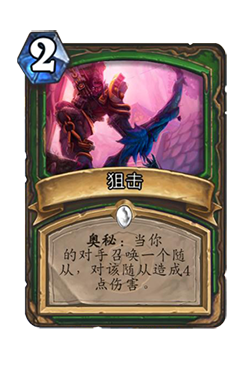 11、还是猎人的奥秘,狙击:(奥秘)当你的对手召唤一个随从,对该随从造成4点伤害。关于狙击触发的冷知识较多,我们来看几条: