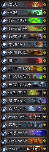 我是一个休闲模式打了快3000把的玩家,虽然一直没上传说吧,想上却又没心思跟精力上,毕竟工作了,不像以前上学那么认真玩游戏。废话不多说先说说 卡组的核心吗 首先是2发咆哮加2发自然之力,这不多说玩咆哮德必须带的。下来就是麦田了,麦田跟老鹿是打动物园跟猎人的资本,加上野性印记更是要他们的,老鹿2攻4血本来就不强,他在场上的作用并不是很大,感觉就像个架过强的阿古斯,所以我们变废为宝加个野性印记,既增强了战场又提前给敌人交点斩杀技能,是非常不错的,反正我们后面大怪多,印记可以配的牌非常多知识古树,女王, 即使人家不上嘲讽怪我们也可以 给敌人上个印记 一个黑骑士可以砍了,反正可以配合的真的很多又灵活,然后就是增强战场,最后一波咆哮带他走,下面谈谈打法。