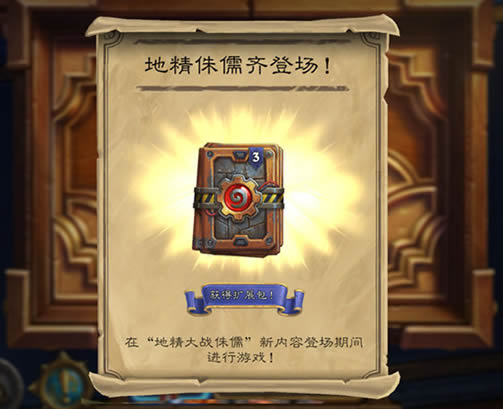 为了庆祝“地精大战侏儒”的发行,暴雪向所有在12月10日至12月19日之间登录《炉石传说》的玩家提供3包免费的“地精大战侏儒”扩展包。与经典扩展包一样,“地精大战侏儒”扩展包中包含5张新卡牌,其中至少一张为稀有或更高品质。而这些卡牌,也仍然可以使用奥术之尘制作。