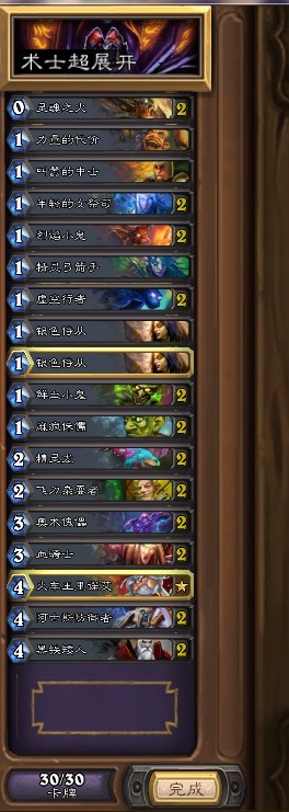 我习惯输一盘换一个卡组,用过的卡组很多,简单统计了一下,胜率最高的应该是两套术士和一套土豪德。把卡组和一些经验分享给娘家人。