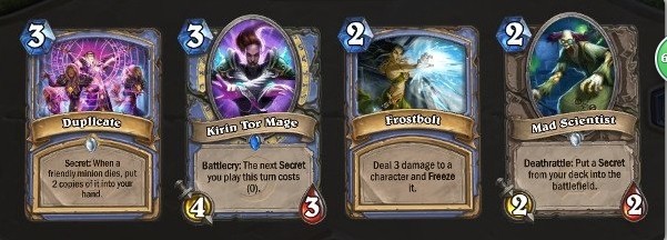 Hayl:除了疯狂的科学家都可以留,第二回合硬币上一个肯瑞托法师+复制,尤其打牧师特别好,寒冰箭也可以用来解掉一个送葬者。