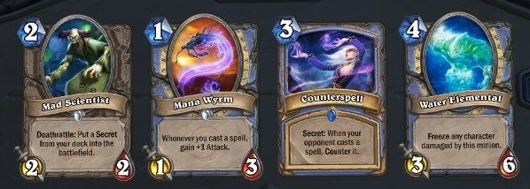 打法师的话对面可能是类似的卡组或是快攻流,无论是哪种,都取决于谁能掌控节奏,所以在这里需要一些随从站场。一个解不掉的法力浮龙就可以处理很多伤害,比寒冰箭或火球术要好得多。之后法术需要用来解对面的随从,合适的时候挂一张法术反制。