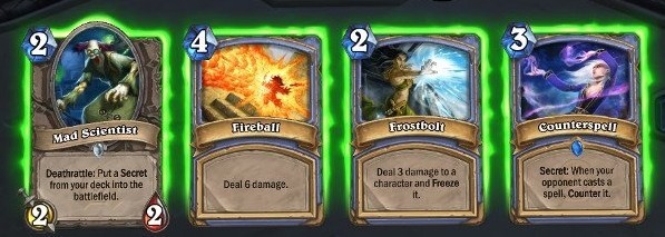 所以在这里我们需要的是法术来配合法力浮龙,并且通过疯狂的科学家抽一张奥秘。打动物园的时候有法术解对面随从的话是不错的,打手牌术寒冰箭和火球术都是后期斩杀的法术。如果还能有一张法力浮龙的话这个起手会更好一些。